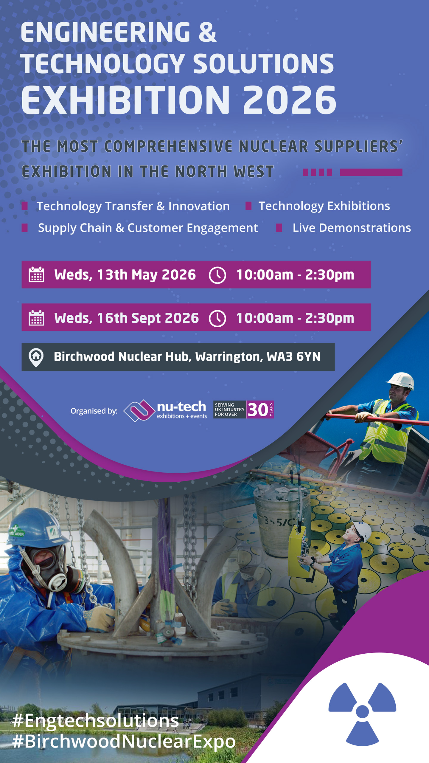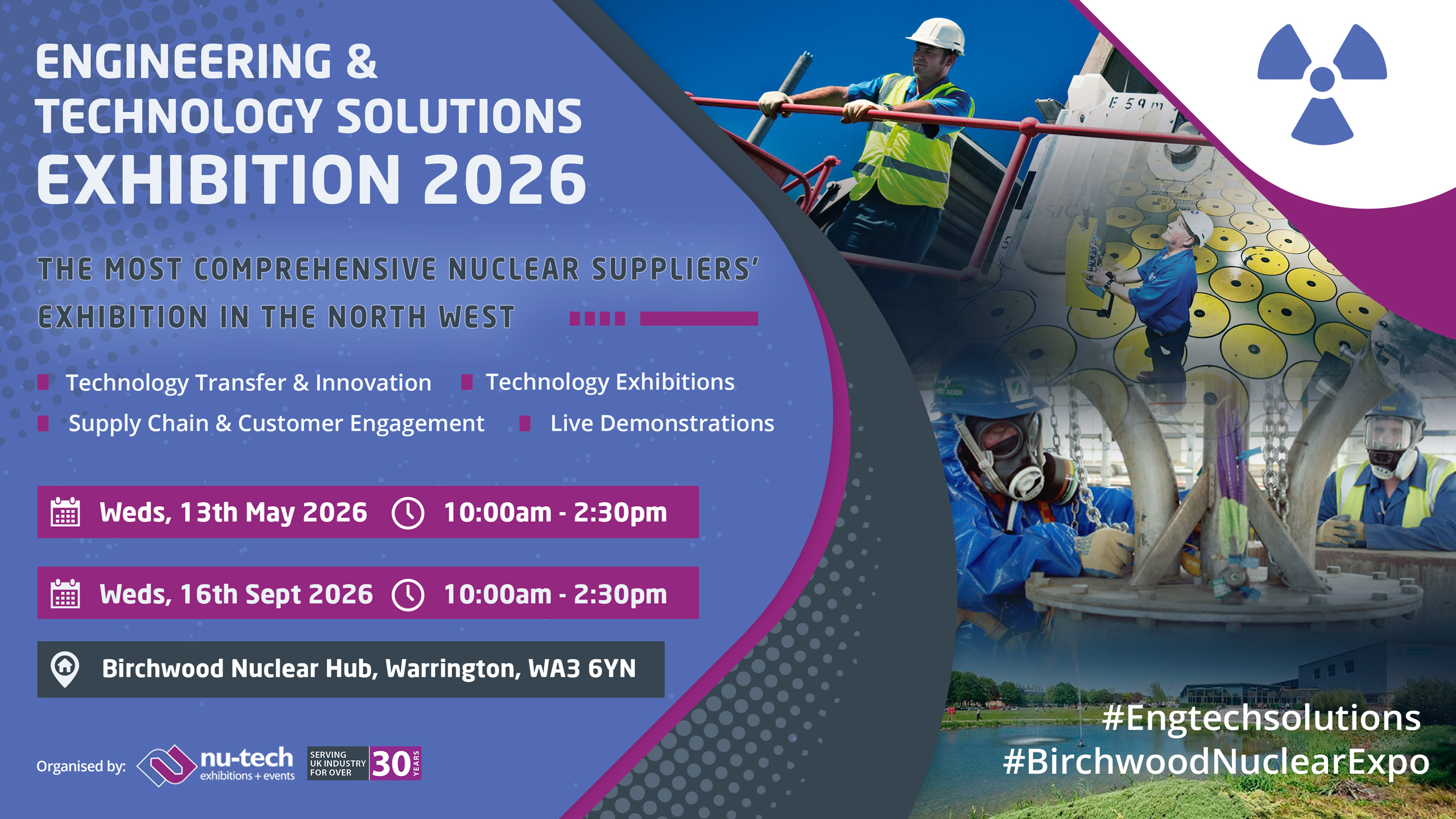 As the biggest nuclear event of its kind to be held in the North West of England each year – the first being introduced by Nu-Tech to the Birchwood Park in 1994 – we are proud of our record as the leading and longest-serving organiser of bespoke supplier exhibitions to the UK’s nuclear sector.